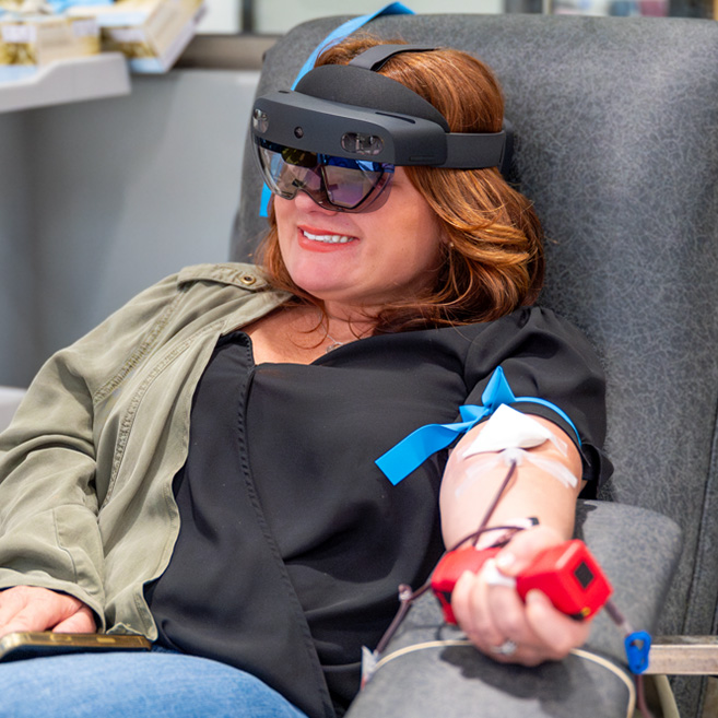 Once you’re comfortable on the donor bed, we’ll gently cleanse your arm with antiseptic—just let us know if you have any allergies to chlorhexidine or iodine. Every donation uses a brand-new, sterile needle for your safety. Then it’s your time to relax, breathe and know you’re giving back in a powerful way.
